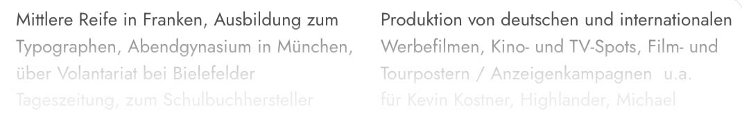 Seit 1985 immer die eigene [kleine aber feine] Werbeagentur im Hintergrund; immer den Fotografen, Filmern, Illustratoren und anderen Kreativen gesagt wo’s lang geht, was ich will und brauche: